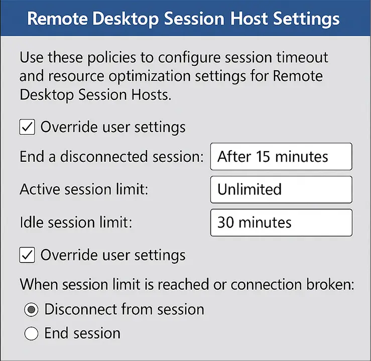Force automatic disconnection/logoff for idle or disconnected sessions. |